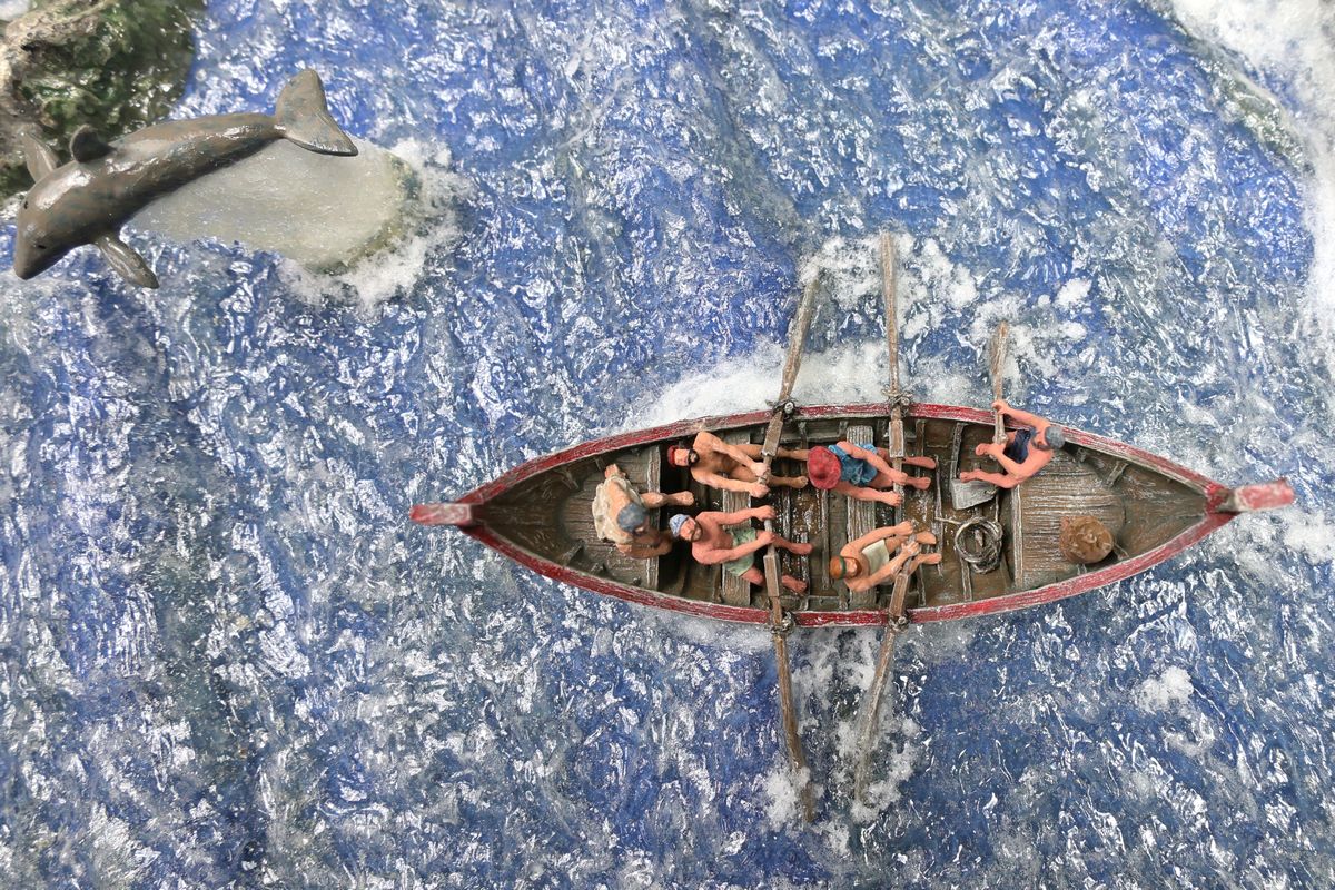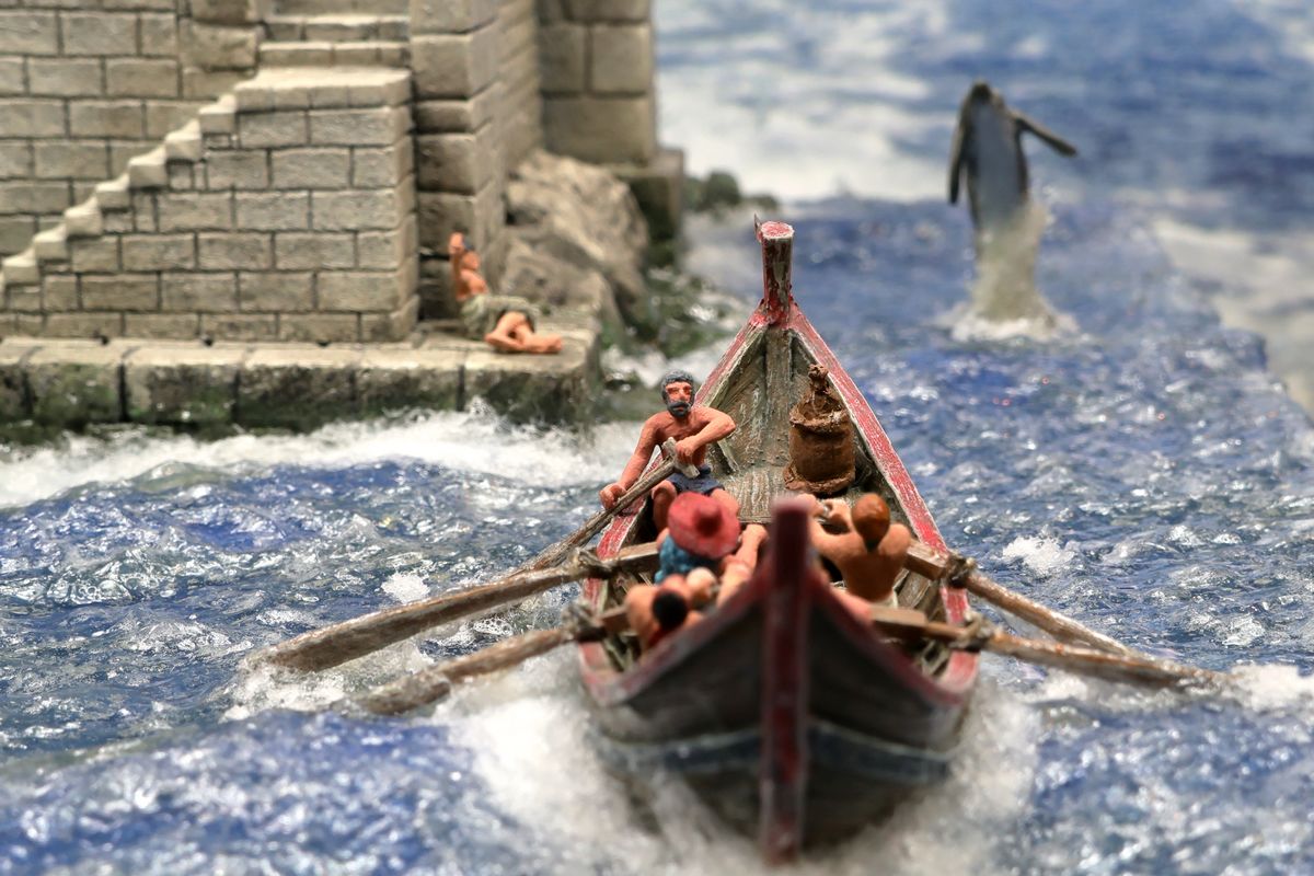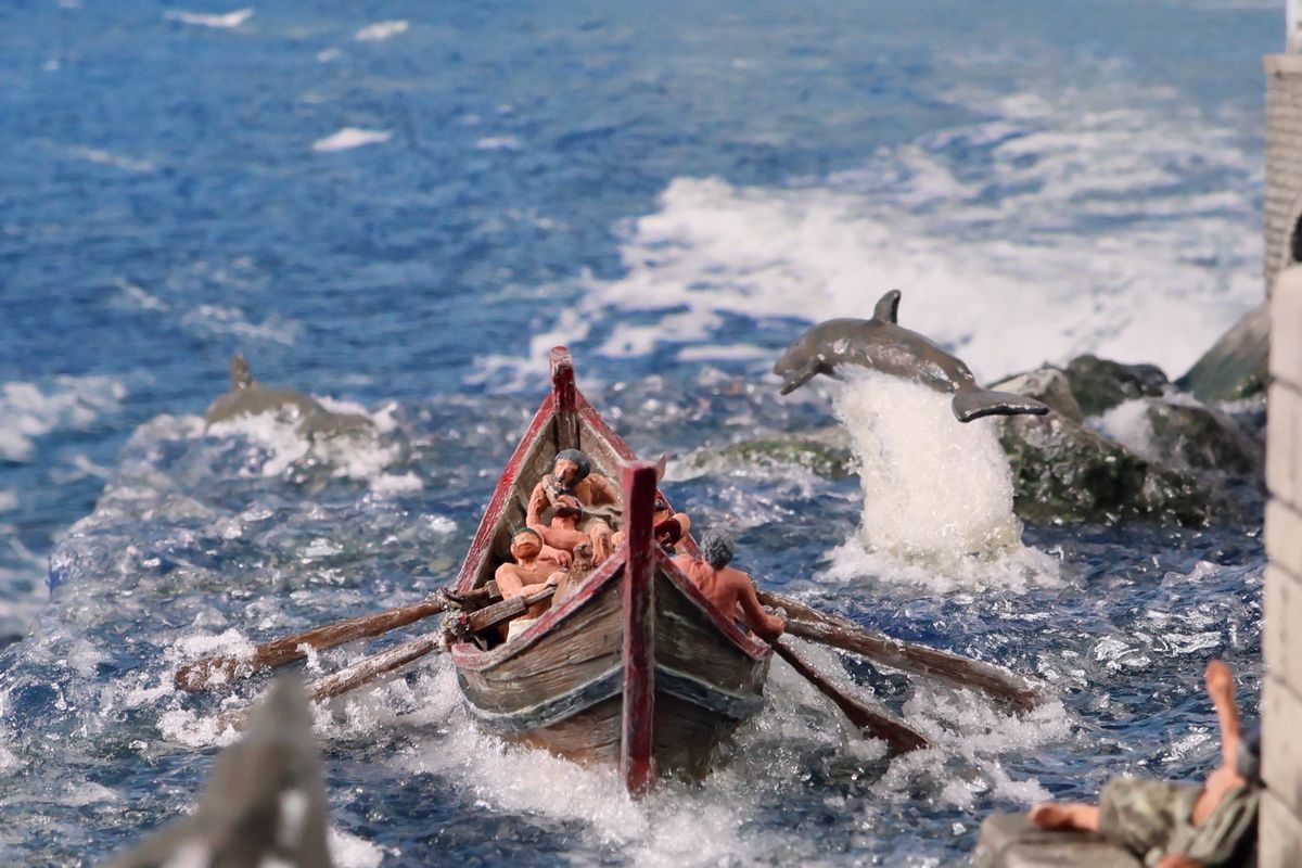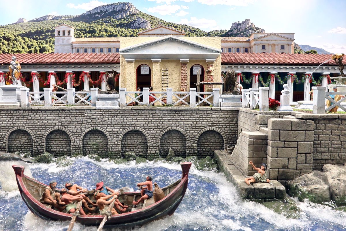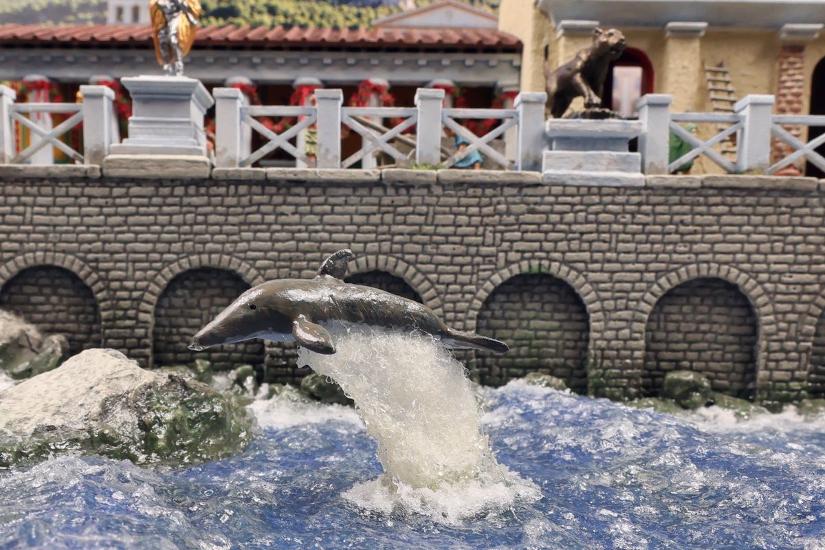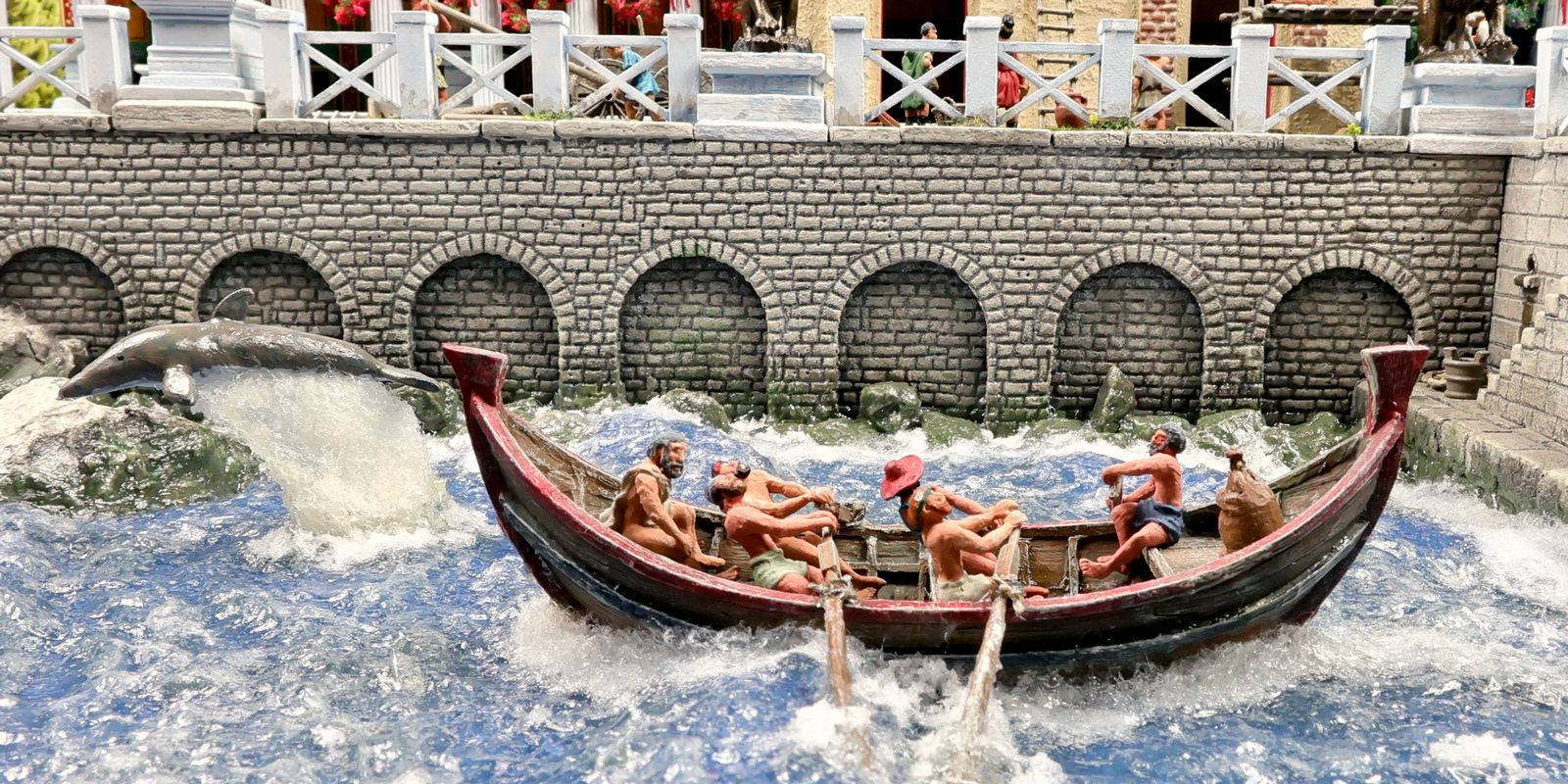 EINE VILLA AM MEER Dieses Diorama zeigt die Wasserseite einer römischen villa maritima. Der Hauptanstoß kam von Plinius dem Jüngeren, der in seinen Briefen über seine Villen in Italien schrieb. Tatsächlich präsentiert er literarische Texte, die keine präzisen Baupläne beschreiben: Es ist unmöglich, anhand der Plinius-Briefe eine exakte Rekonstruktion eines seiner Anwesen anzufertigen. Das hielt die Leute jedoch nicht von Spekulationen ab: Mein Lieblingsentwurf ist der von Karl Friedrich Schinkel aus dem Jahr 1840, welcher Plinius’ Villa Laurentinum an der Laurentinischen Küste südlich von Rom darstellt. (Eine Abbildung davon gibt es hier.) Schinkels Rekonstruktion ist reine Architekturfantasie, aber dennoch sehr beeindruckend! Und eine schöne Inspiration, obwohl aus Platzgründen nur ein kleiner Ausschnitt eines solchen Anwesens gezeigt werden kann. Die Grundfläche des Dioramas ist 58 Zentimeter breit (entspricht in der Wirklichkeit etwa 42 Meter); für eine vollständige Anlage wie in Schinkels Rekonstruktion bräuchte man eine Fläche von mindestens 2 × 2 Metern. Die Hintergrundfotos zeigen zum einen mediterrane Küsten (© S. Berry; © George E. Koronaios / CC BY-SA 4.0), zum anderen eine durch KI erzeugte Fortsetzung römischer Villengebäude in einer Berglandschaft, um einen passenden Anschluss für das Hinterland des Dioramas zu erzeugen. Dieses Experiment mit KI-generierten Bildern (PromeAI) ist ganz nett ausgefallen, allerdings nicht perfekt – ein Fehler in der Orientierung der Dachziegel ist besonders auffällig, wurde aber "zu Dokumentationszwecken" bewusst belassen. Hier noch einige Bilder im Panoramaformat: |