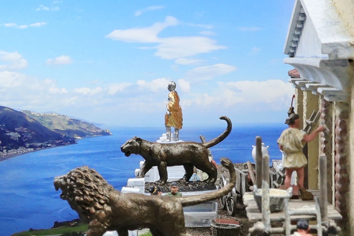 Geschichte besteht eh’ nur aus trockenen Jahreszahlen? Wer das glaubt, sollte sich besser auf anderen Seiten umsehen – oder aber sich hier vom Gegenteil überzeugen lassen. Denn es gibt eine ganze Reihe von Möglichkeiten, um Geschichte spannend und anschaulich zu präsentieren, und eine davon ist der Modellbau. Die Dioramen, die im Folgenden vorgestellt werden, zeigen Szenen aus der Römischen Geschichte im Maßstab 1:72. Dabei dauert es viele Monate, oft sogar mehrere Jahre, ein solches Diorama fertig zu stellen, weshalb auch nicht mit täglichen Aktualisierungen dieser Seite zu rechnen ist ...